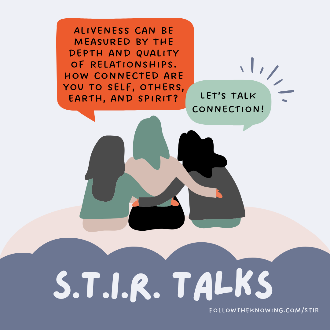 Our theme for May is Connections! We’ll be discussing the curiosity question - Aliveness can be measured by the depth and quality of relationships. How connected are you to self, others, earth, and spirit?